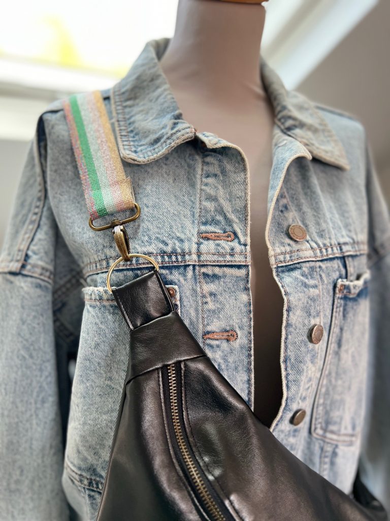 Au début j’avais tendance à coudre des versions fantaisies, mais maintenant j’ai envie d’avoir une banane qui évolue en fonction des saisons et de mes envies. J’ai donc décidé de modifier légèrement la finition de la sangle pour pouvoir changer de bandoulière facilement. Vous allez voir, c’est très simple !