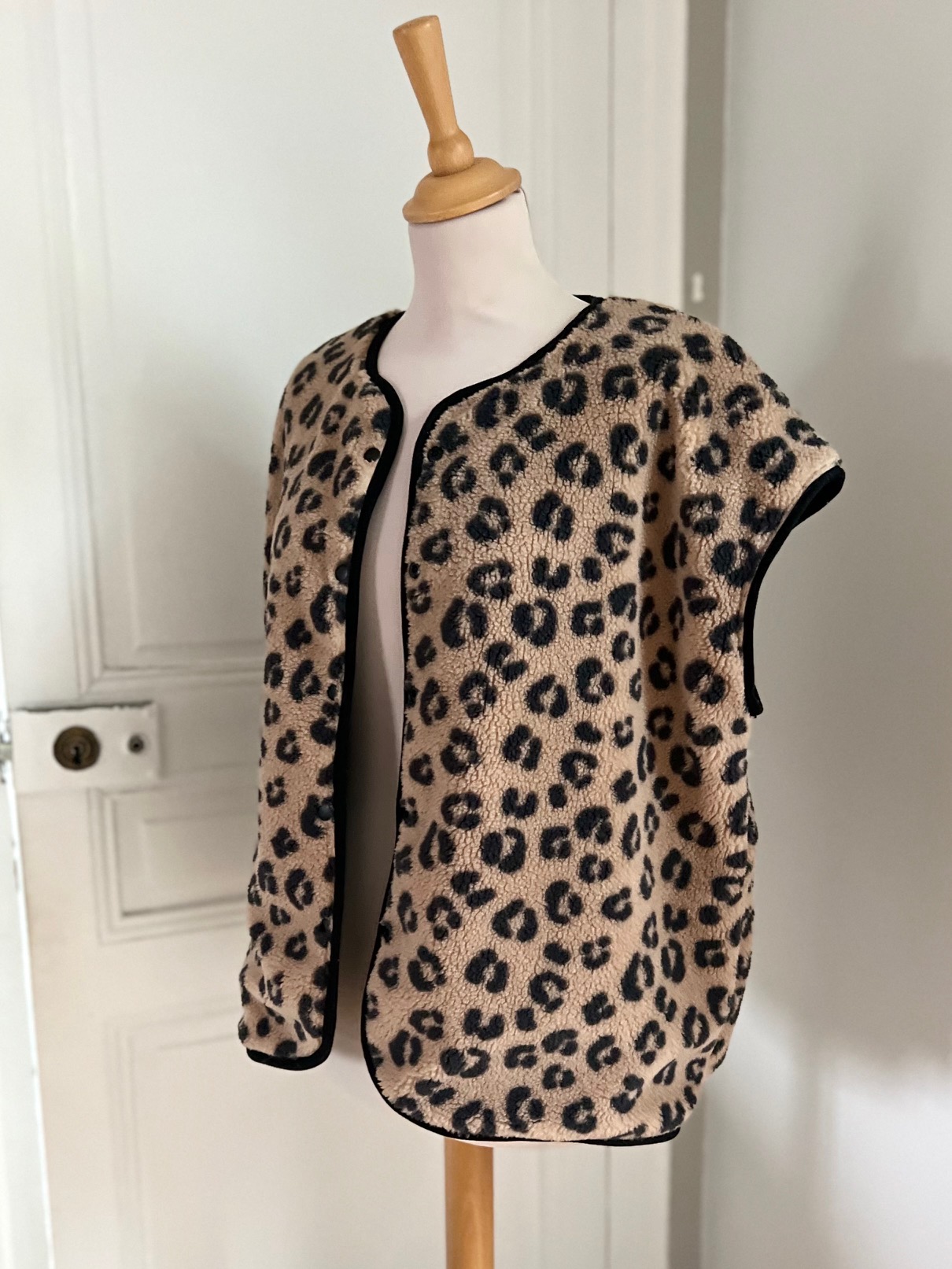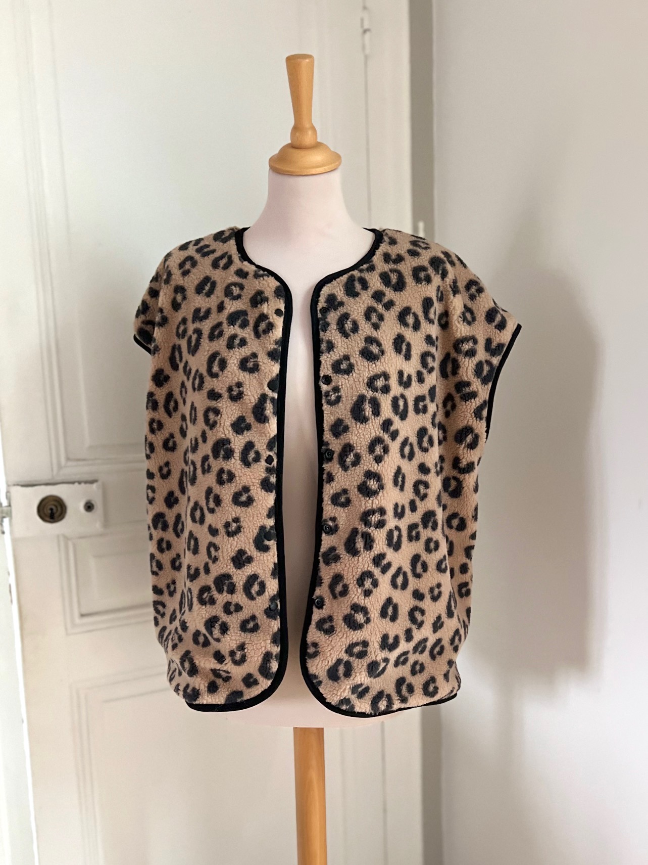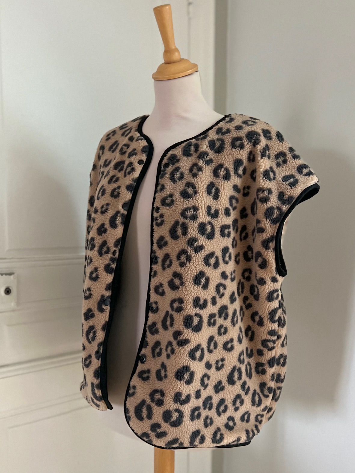 Le patron que j’ai utilisé est Molly de FibreMood, que vou spouvez ajouter en option (j’ai réalisé la version de la veste, sans les manches, ni les poches); mais vous pouvez utiliser n’importe quel autre patron de gilet de berger ou veste sans manches.